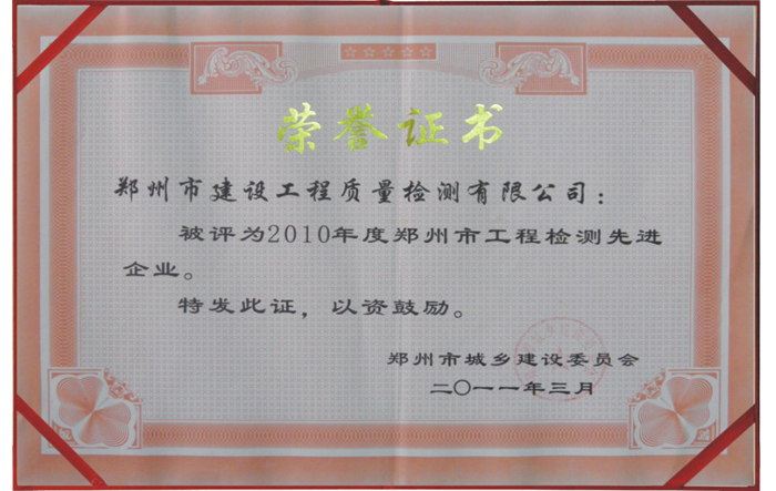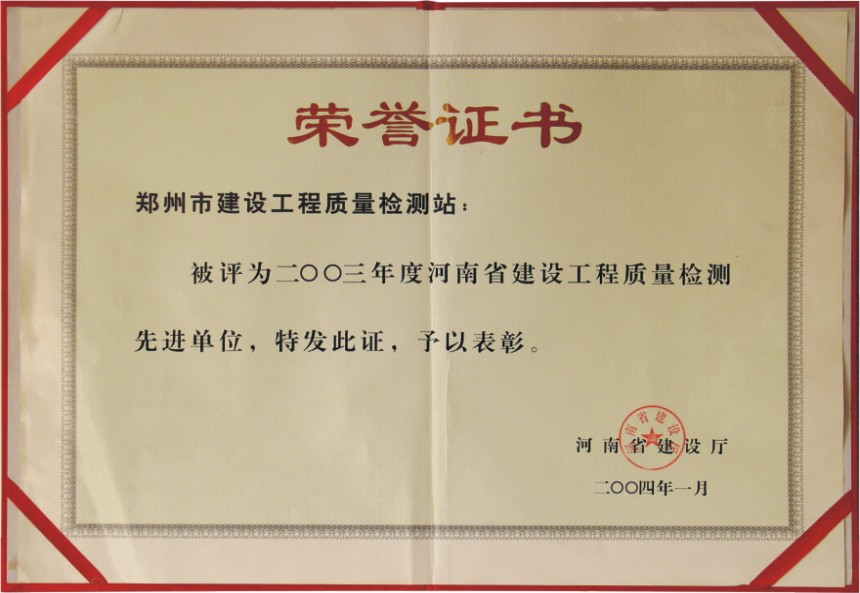 喜訊!我司榮獲2023年度鄭州市城鄉(xiāng)建設(shè)局工程檢測(cè)先進(jìn)單位