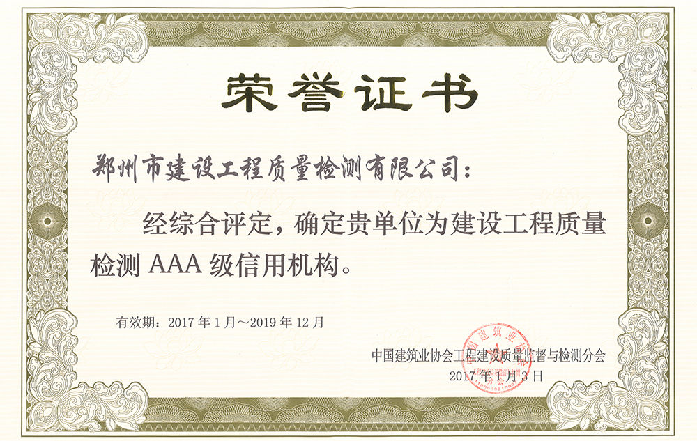 喜訊!我司榮獲2022年河南省建設(shè)工程質(zhì)量檢測(cè)行業(yè)信用示范單...